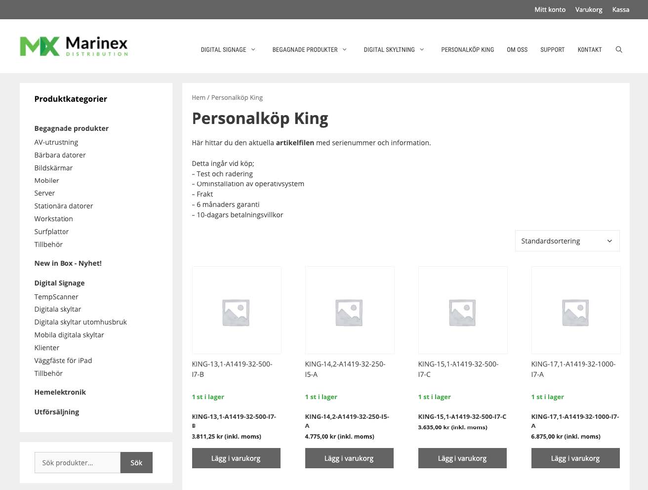 • Once you have registered, you can start shopping. You will also receive an e-mail with your login details if you want to shop several times. You should see the category named ”Personalköp-King” which is located on the menu at the top of the page. Here you will find the units that pertain to the personal purchase (see red-marked ring in picture 1).